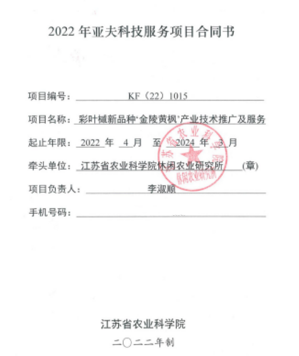近日,金杉生態(tài)環(huán)境科技(南京)有限公司與江蘇省農(nóng)科院休閑農(nóng)業(yè)研究所聯(lián)合推動(dòng)的<‘金陵黃楓’產(chǎn)業(yè)技術(shù)推廣及服務(wù)>成功申報(bào)2022年亞夫科技服務(wù)項(xiàng)目。